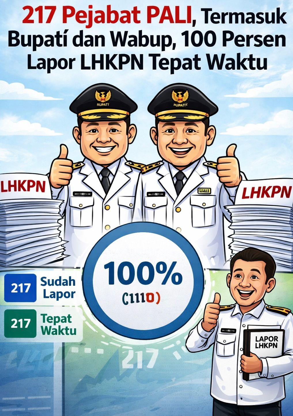 PALI – Pemerintah Kabupaten Penukal Abab Lematang Ilir (PALI) memastikan seluruh pejabat wajib lapor telah memenuhi kewajiban pelaporan Laporan Harta Kekayaan Penyelenggara Negara (LHKPN) dengan capaian 100 persen.