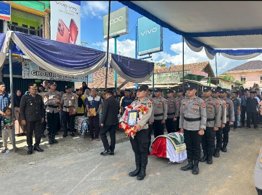 “Pada kesempatan yang penuh rasa duka ini, kami memohon kepada seluruh hadirin untuk bersama-sama memanjatkan doa agar segala dosa almarhum diampuni, amal baktinya diterima, dan arwahnya mendapatkan tempat terbaik di sisi Tuhan Yang Maha Esa,” ujar KOMPOL Sutrisman dalam sambutannya.