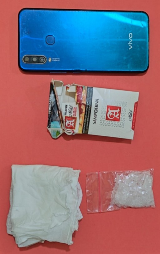Dalam penangkapan tersebut, petugas menemukan satu paket plastik klip bening berisi serbuk putih yang diduga narkotika jenis sabu dengan berat bruto 8,59 gram. Barang haram tersebut diketahui dibungkus menggunakan tisu putih dan disembunyikan di dalam bungkus rokok yang diletakkan di sepeda motor milik tersangka. Selain itu, polisi juga mengamankan sejumlah barang bukti lain, di antaranya satu unit sepeda motor, satu unit telepon seluler, serta beberapa barang pendukung lainnya.