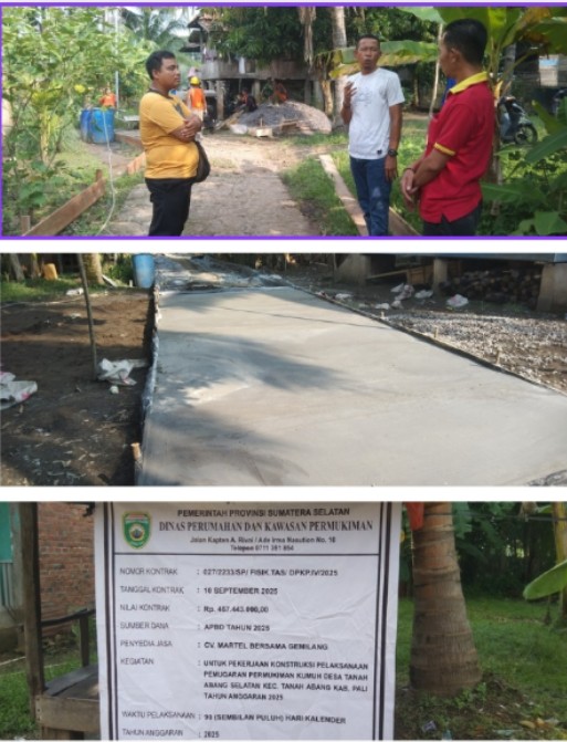 PALI, 11 Oktober 2025 — Pemerintah Provinsi Sumatera Selatan melalui Dinas Perumahan dan Kawasan Permukiman (Perkim) terus memperkuat kolaborasi dengan pemerintah desa dalam meningkatkan kualitas permukiman masyarakat. Salah satunya terlihat di Desa Tanah Abang Selatan, Kecamatan Tanah Abang, Kabupaten Penukal Abab Lematang Ilir (PALI), yang saat ini tengah melaksanakan proyek pemugaran kawasan permukiman.